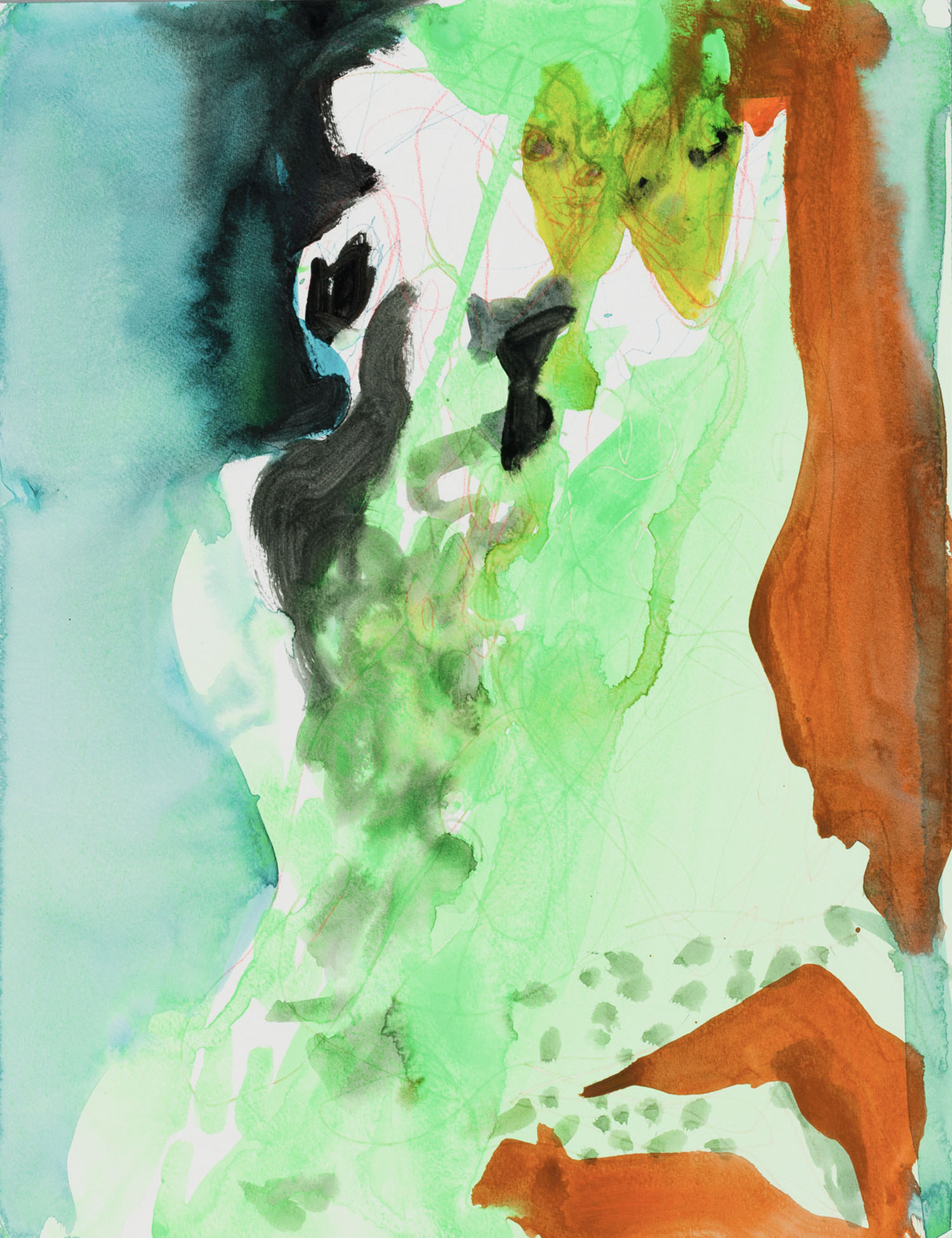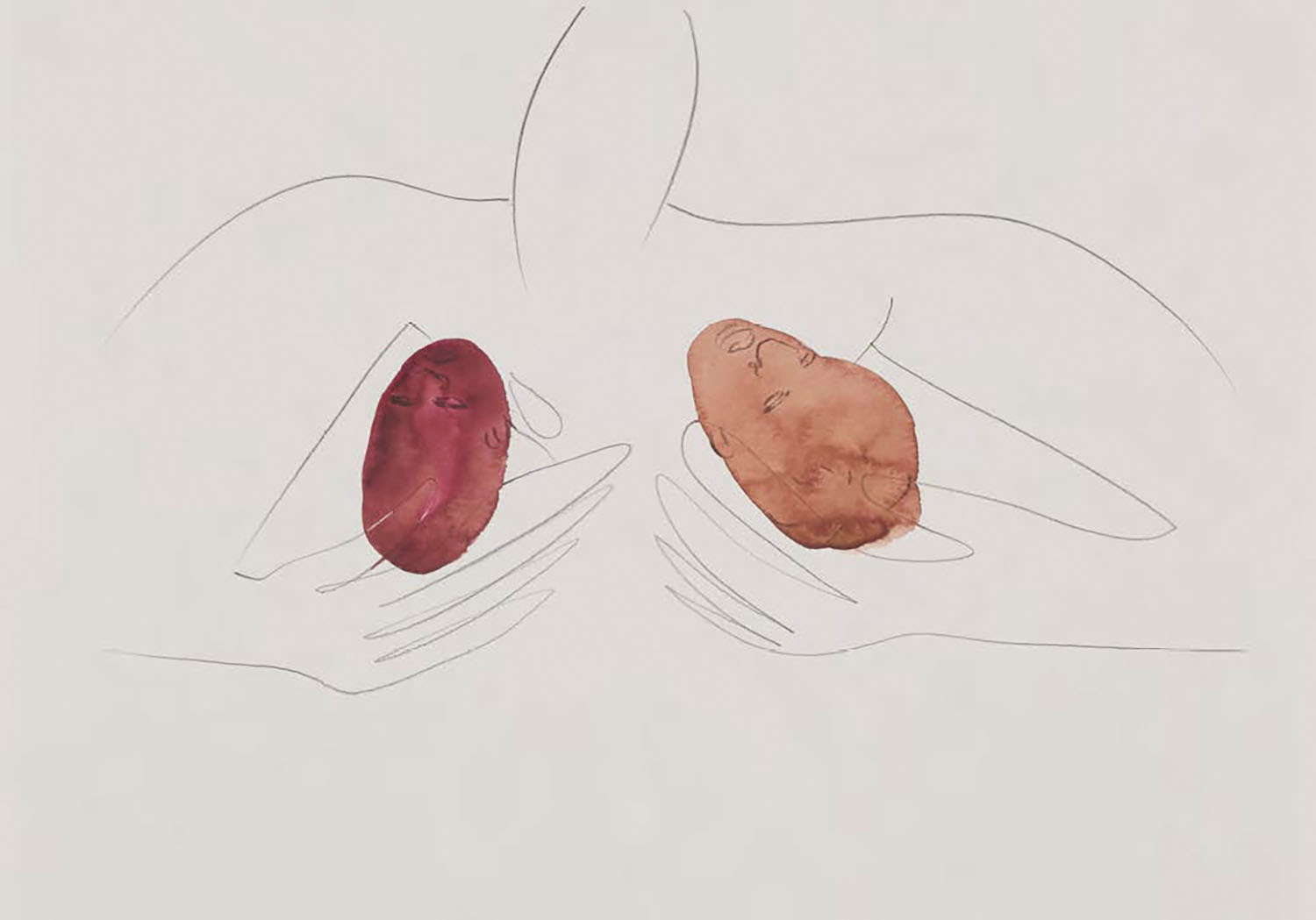 川内は、食への関心を起点に、身体と思考、自己と他者といった相互関係の不明瞭さを探究しています。食事・会話・セックスといった多様なコミュニケーションの場面において見え隠れする自己や他者をモチーフに、ドローイングやペインティングをはじめ、針金、樹脂、ネオン管、大理石など多岐にわたるメディアを横断しながら作品を制作しています。制作を通して「捉えがたい身体や目に見えない思考の動きを線に留めている」と本人は語っています。
