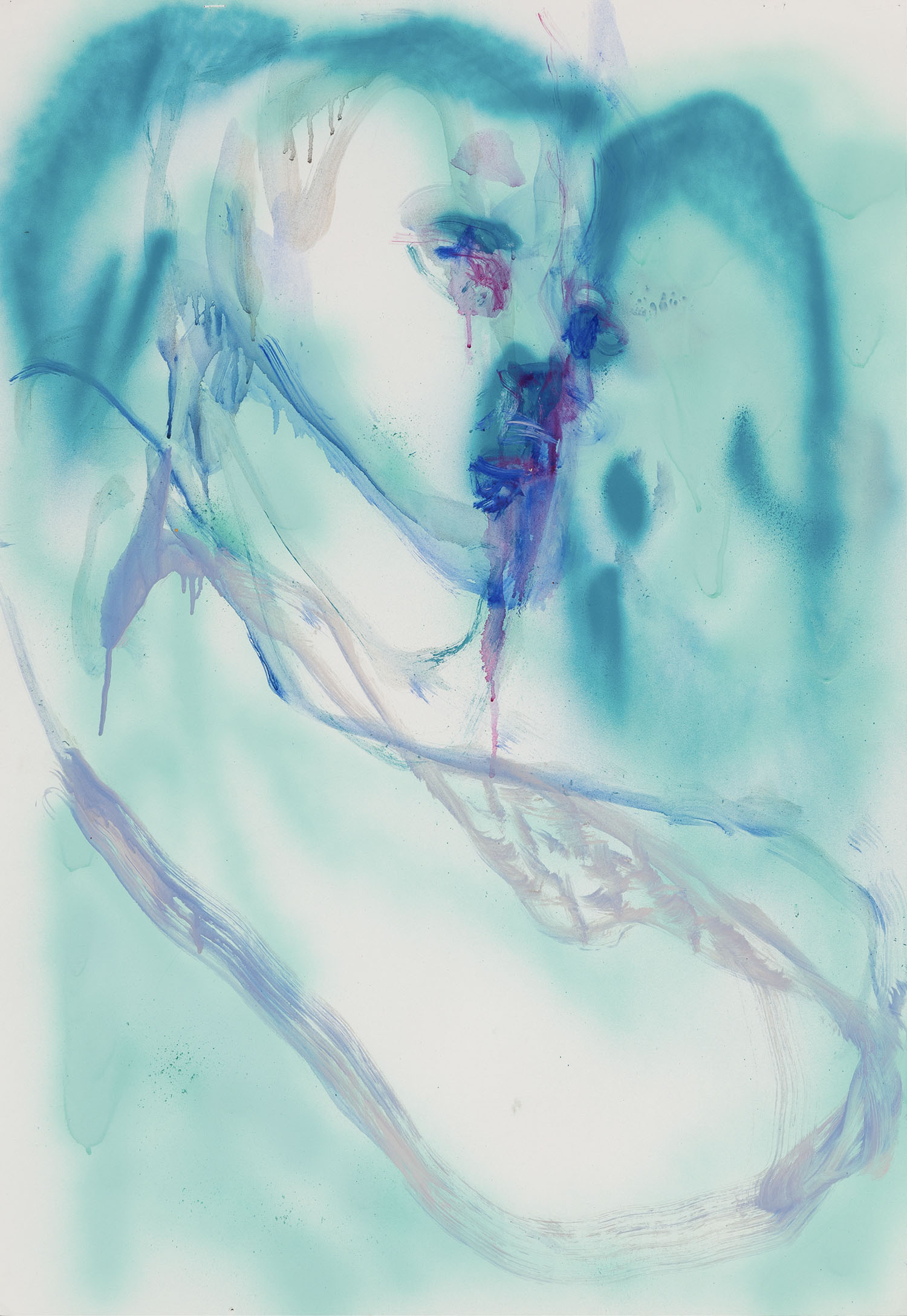左:Fumika Tsuchitori, I and You (On the Other Side), 2025, oil and spray on canvas, 1455 × 1120 mm