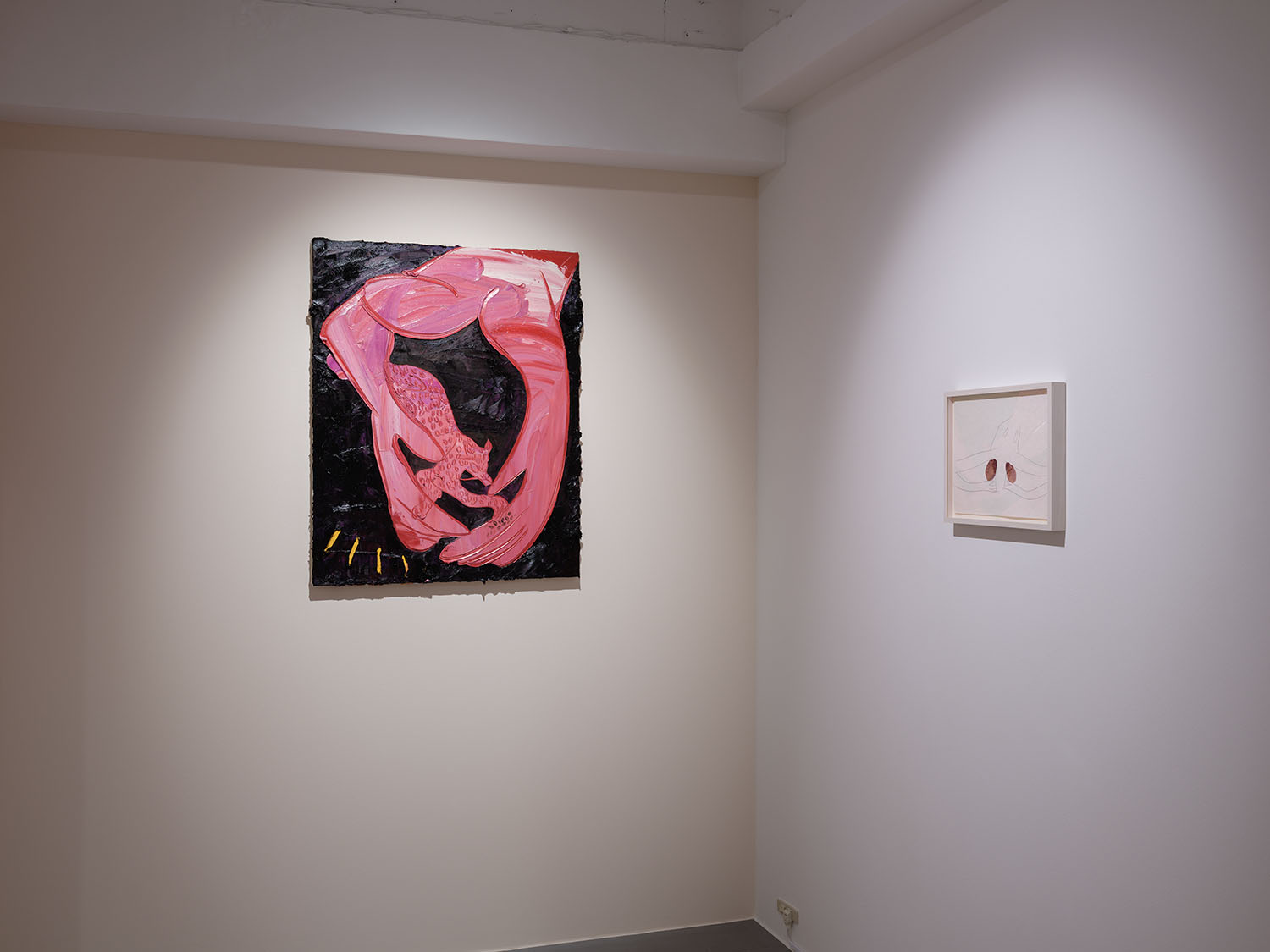 WAITINGROOM(東京)では、2025年11月5日(水)から12月21日(日)まで、川内理香子による個展『Humans and Tigers』を開催いたします。本展は「アートウィーク東京2025」の参加展示です。川内は、食や食にまつわる行為を起点に、身体への関心を深めてきました。その探究は、身体と思考、自己と他者といった二項対立へと広がり、さらにそれらを暗喩するとされる南アメリカやアフリカの神話からインスピレーションを得ています。ペインティング、ドローイング、ネオン管、針金、大理石など多様な素材を扱う彼女の作品には、常に「線」が重要な要素として存在します。身体性や精神性を如実に映し出す線は、その瞬間の身体の動きや感情をスピード感のある筆致とともに画面に刻み込まれます。本展では、これまでに取り組んできた二項対立のテーマの中でも、とりわけ「動物(虎)と人間」という関係に注視し、新作を中心に展示を構成します。