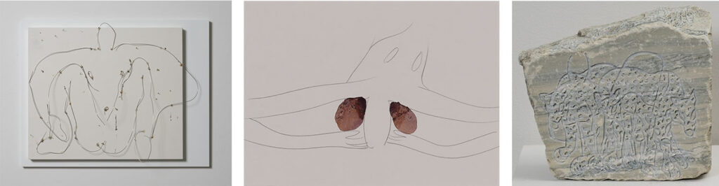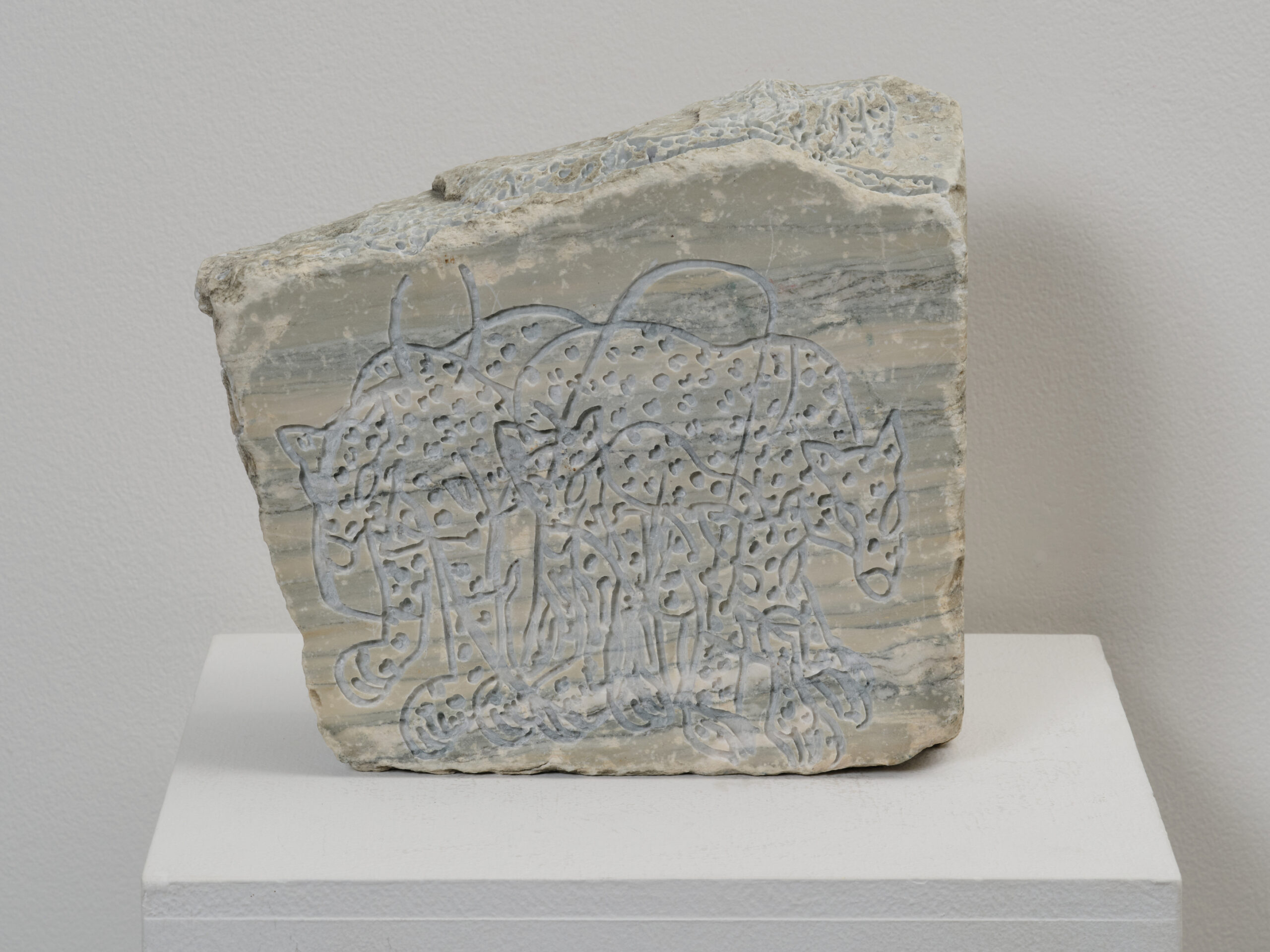 右:Human and tigers, 2025, stone, 90 × 240 × h210 mm