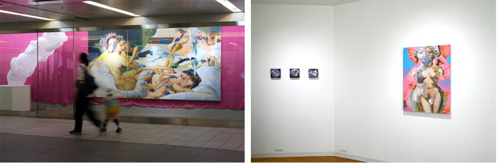 Left : グループ展『Art Award Tokyo Marunouchi』(2025、行幸地下ギャラリー、東京)会場風景